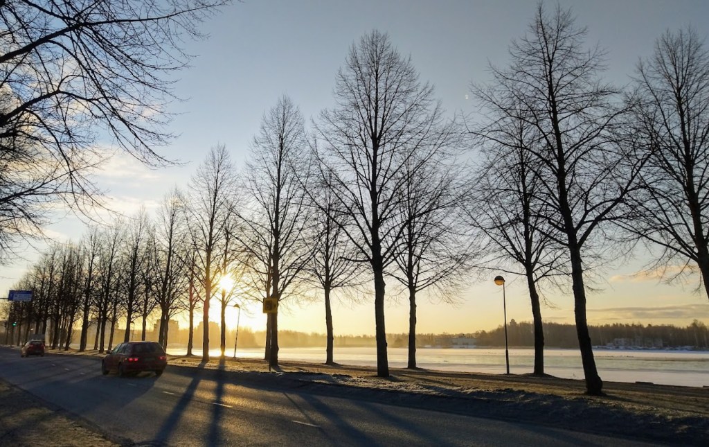 Kylmä keli jatkuu, tälle päivälle on luvassa seitsemän astetta pakkasta. Kaupungin keskustan kadut ovat jo mukavan sulat. On ilo kävellä lenkkareilla painavien talvikenkien jälkeen.