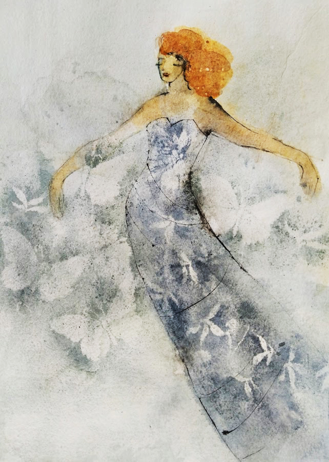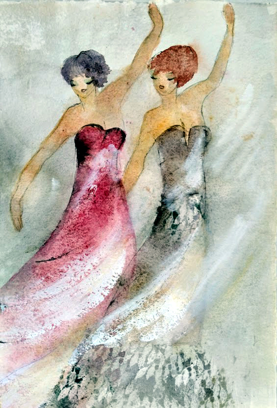 Tämä ilmoitus sai minuun vauhtia. Maalasin tanssivia neitosia. Näyttelyyn saa tarjota kolme työtä. Juryttäjä on kuvataiteilija Senja Vellonen.