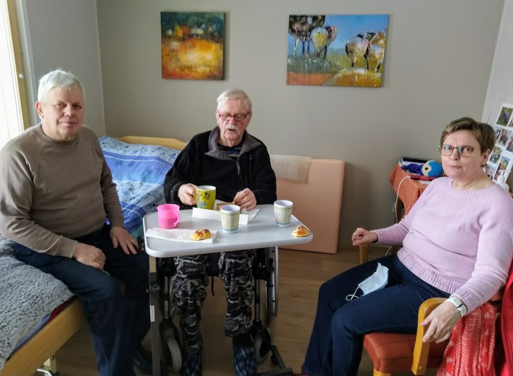 Jussi on saanut enemmän vieraita kuin aikoihin. Olemme käyneet hänen Esko-veljensä ja Arjan kanssa perjantaina ja eilen lauantaina. Arja toi tuoretta kotitekoista pullaa ja persikkapiirakkaa.