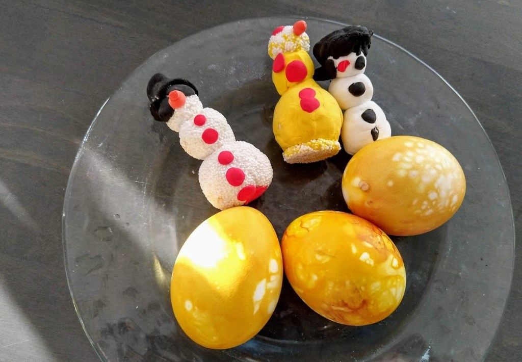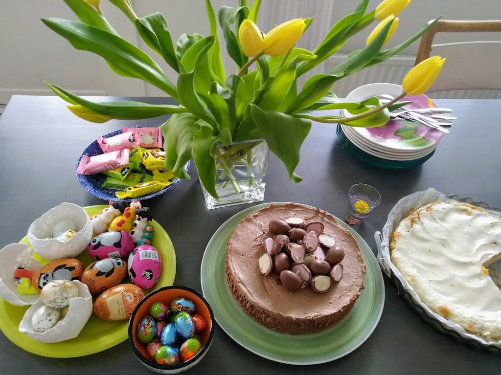 Joimme minun luonani kahvit ja herkuttelimme leivonnaisilla ja suklaamunilla.