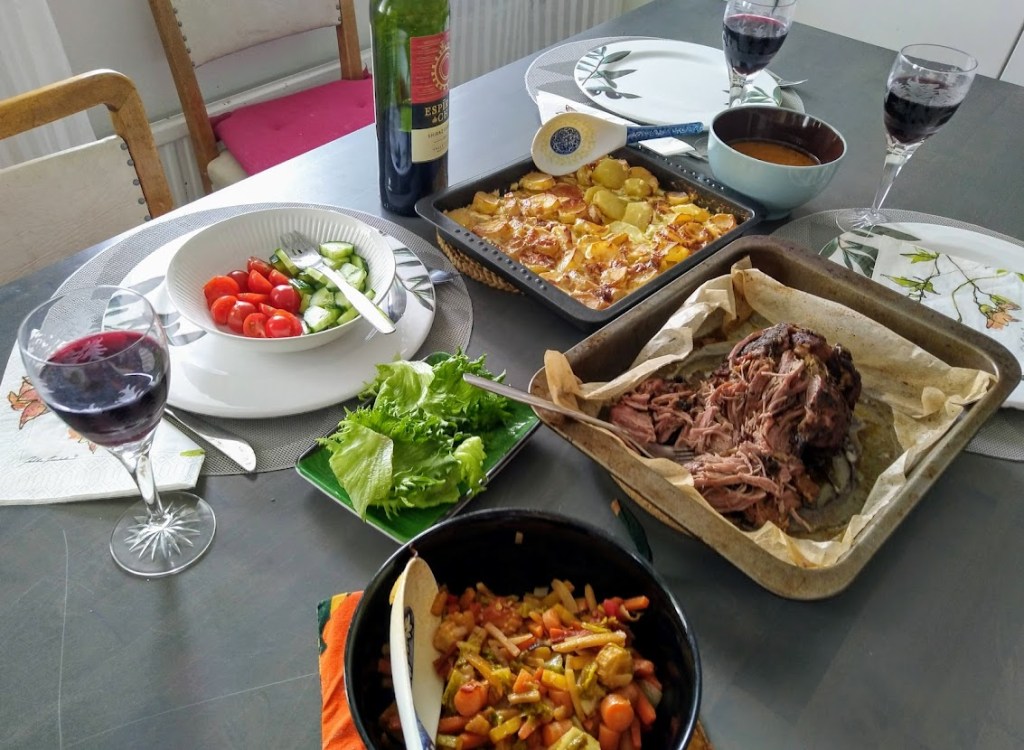 Kokkasimme pääsiäisen kunniaksi herkkulounaan. Uunista tuli herkullinen tuoksu karitsanpaistin ja kermaperunoiden myötä, kun palasimme Jussin luota.