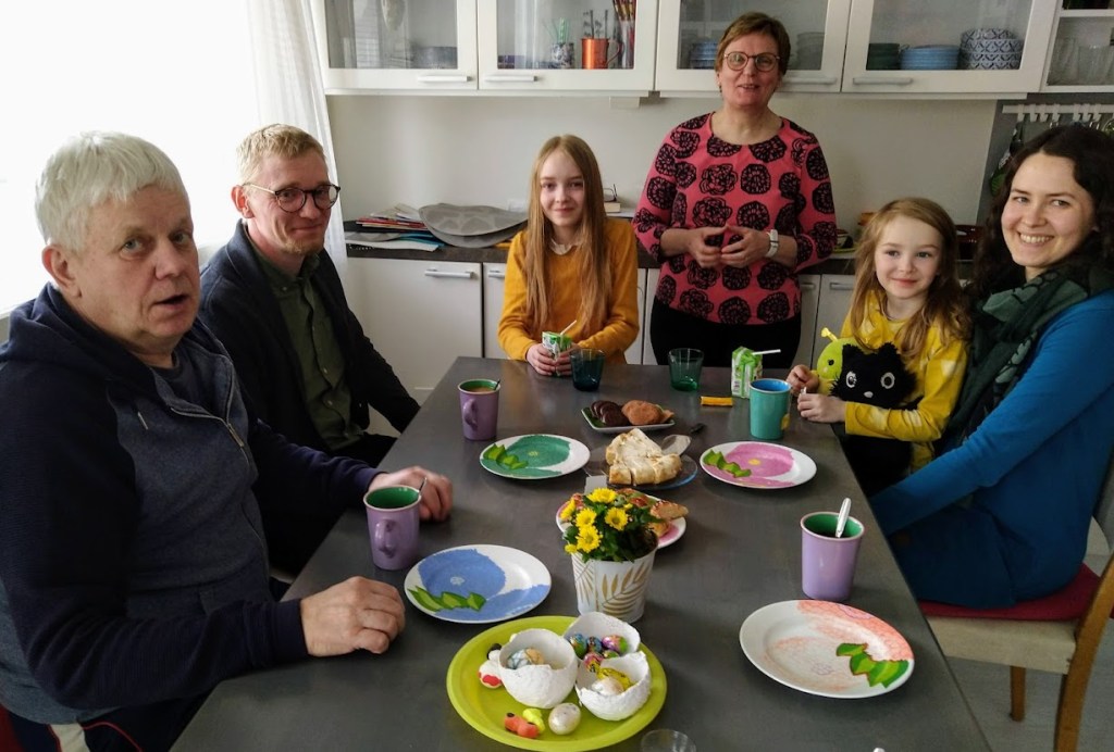 Juhla jatkui, kun Arjan ja Eskon Timo-poika poikkesi perheen kanssa iltapäiväkahville. Meiltä Timon perheen matka jatkui kotiin Seinäjoelle.