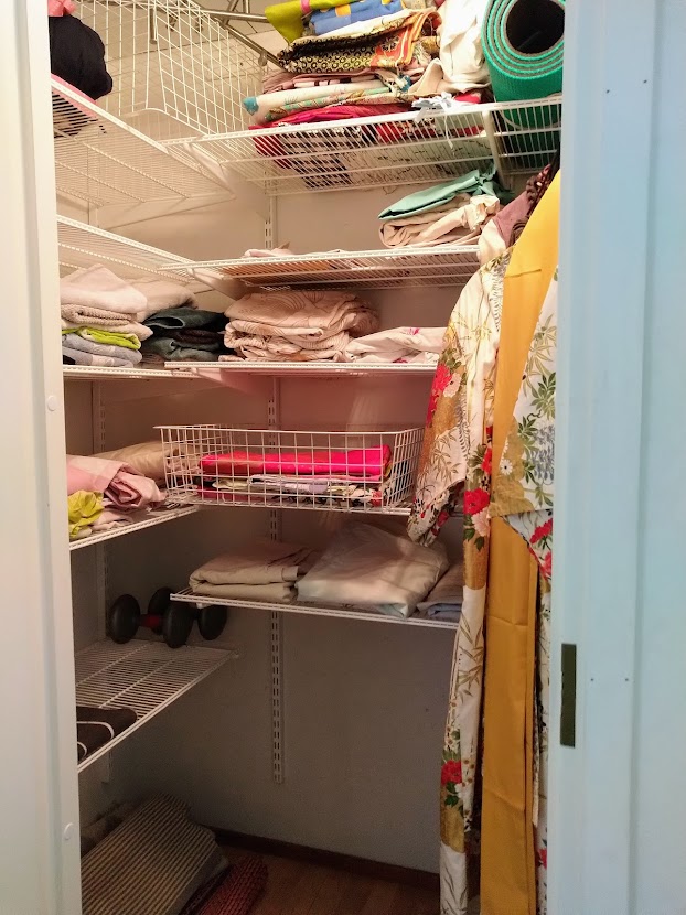 Huhkiminen tarkoitti maalaustarvikkeiden ja kodin nurkissa lepäilevien taulujen viemistä gallerian kellariin, jossa minulla on tukeva hyllykkö. Koti näyttää entistä ehommalta, kun vapaata tilaa tulee lisää. Vaatehuone ei ole enää huippusiisti vaan välivarasto, mutta turhat tavarat ovat lähteneet.