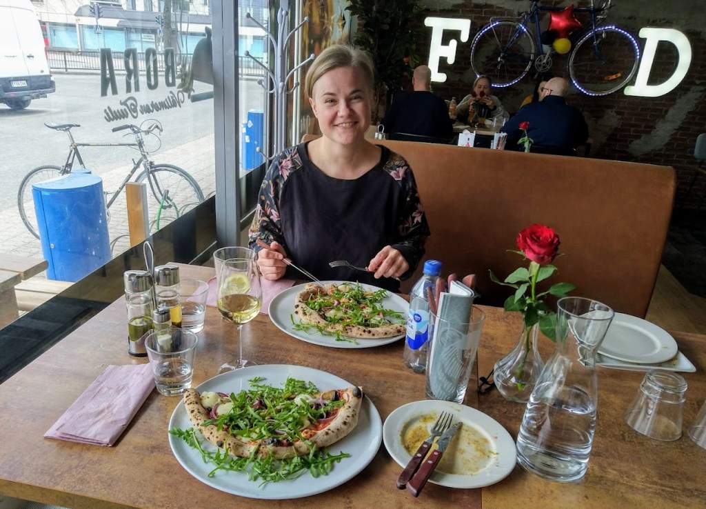 Sain ilokseni Annan vappuvieraaksi. Meillä oli tarkka suunnitelma päivän ohjelmasta. Ensin huhkimme, sitten käymme vappulounaalla ja pappaa katsomassa.