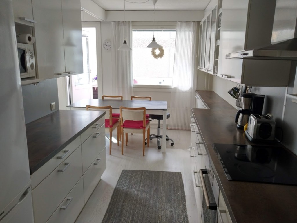 Tunnen itseni hyväksi ihmiseksi. Aamukymmeneen mennessä olin ehtinyt tyhjentää keittiön tasot (aikamoinen urakka) ja pyyhkiä pinnat puhtaiksi. Apuna oli taikasieni ja Eucaa. Jääkaappi näyttää täysin kaljulta, kun irrotin lastenlasten kuvat, magneetit ja kirjaintarrat. Lohduttauduin, että ne pääsevät uuteen kotiin.