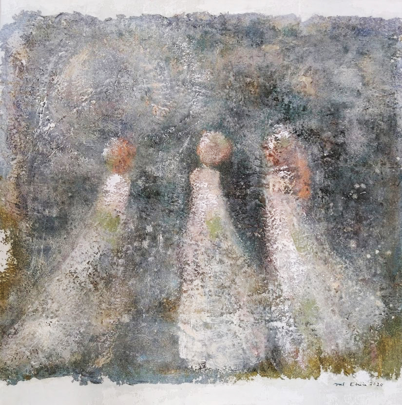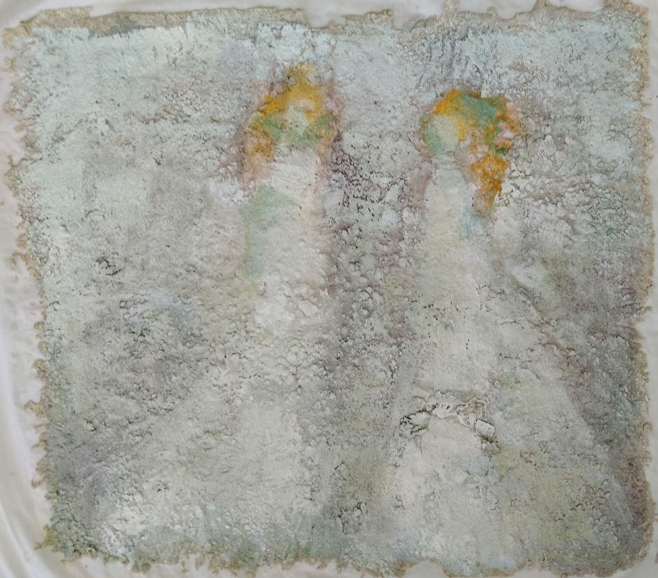 Kevään ainoat freskot ovat lähes valmiit. Kirjaston Ilo ja oivallus näyttelyssä oli esillä freskoni Kuussa tuulee. Ostaja tilasi sille parin. En ihastunut ajatukseen, sillä tilaustyö asettaa paineita.