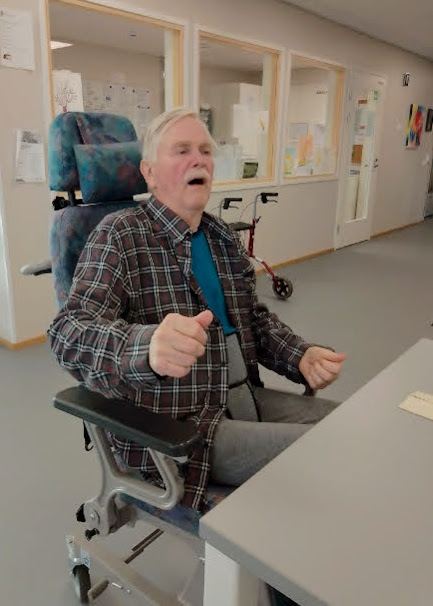 Yllätyin iloisesti, kun Jussi soitti. Tosin hänellä oli hoitaja apuna. Jussi ei montaa sanaa sanonut, mutta Visarannasta lähetetty kuva kertoi, että mies on saanut käyttöön uuden luksusmallisen pyörätuolin.