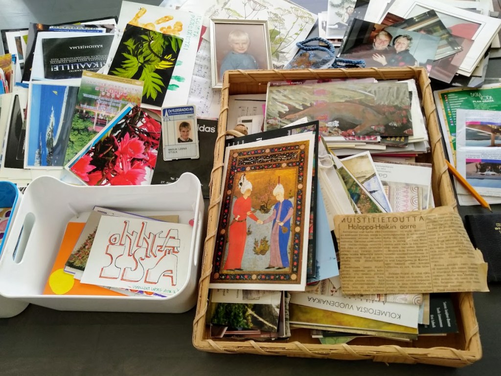 Siivotessa löytyy haikeita muistoja. Olen kerännyt vuosien varrella postikortteja. Käytän niitä kirjanmerkkeinä ja inspiraatiokuvina.