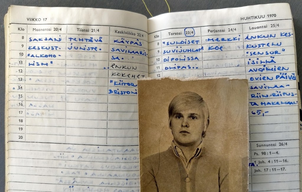 Jatkoin aamulla siivousurakkaa. Nyt vuorossa oli työhuoneeni laatikosto. Silmiin osui kalenteri vuodelta 1970.