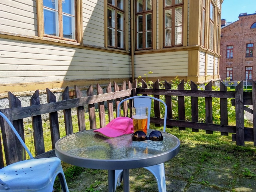 Kävin aamukahvilla Goodmanilla, sillä osa keittiötarvikkeista oli pakkauslaatikoissa. Päivän kuntosalitreenien jälkeen päätin, että olin ansainnut lepohetken omassa pihapiirissä Seiskan terassilla.