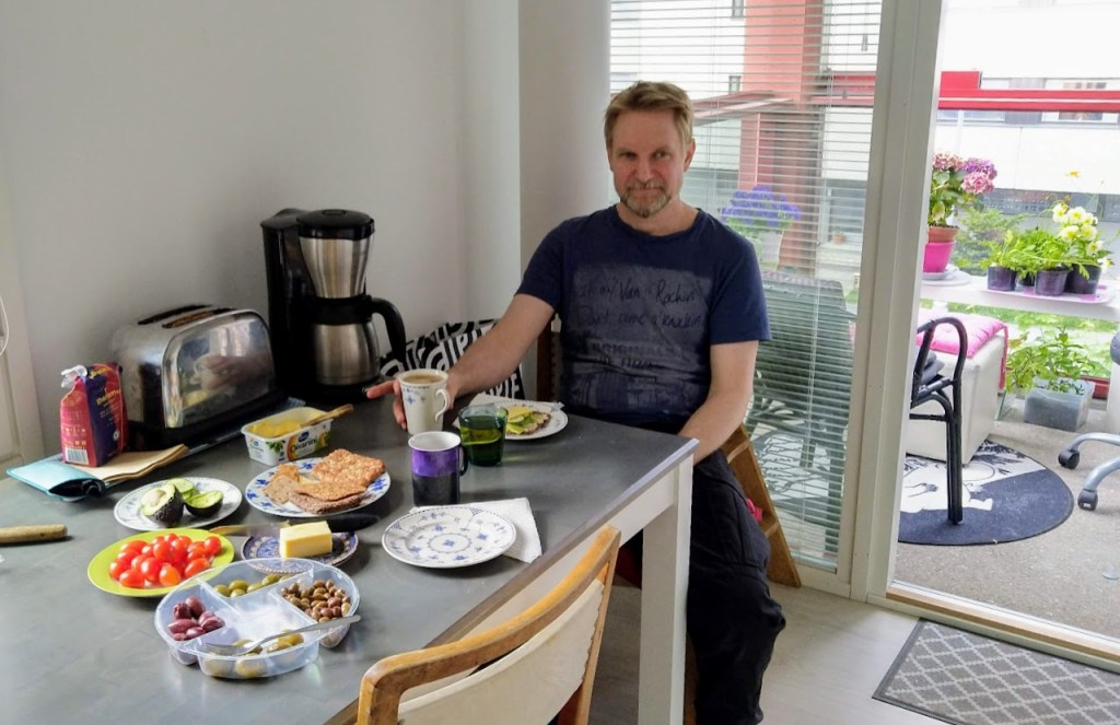 Tarjosin tukevan aamiaisen. Miikalla oli mukana työkalut. Listalla oli lokerikkojen kiinnitys seiniin, lyijylasikaapin kokoaminen, runsaasti ruuveja ja koukkuja, interyhteyden ja chromecastin asennus sekä nokkakärryjen hakeminen Palokunnankadulta.