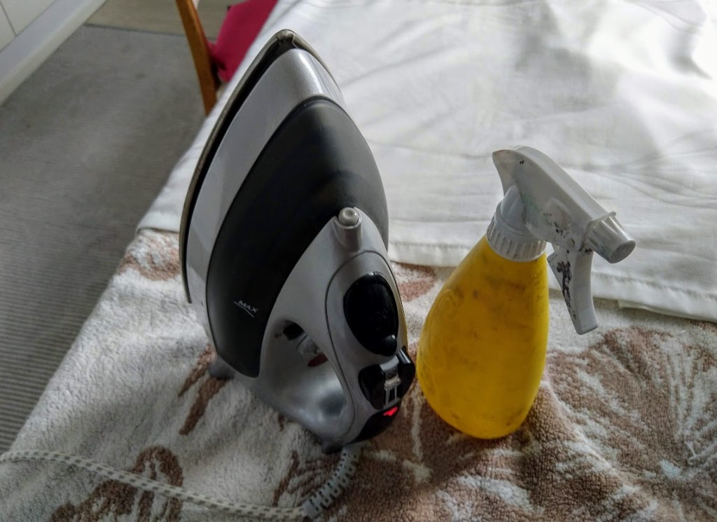 Yllätin eilen itseni ottamalla silitysraudan esiin ja silittämällä verhot. Huonekorkeus on 2.75 metriä, joten odotan jotakuta ketterää kiipeämään tikkaille ja ripustamaan ne.