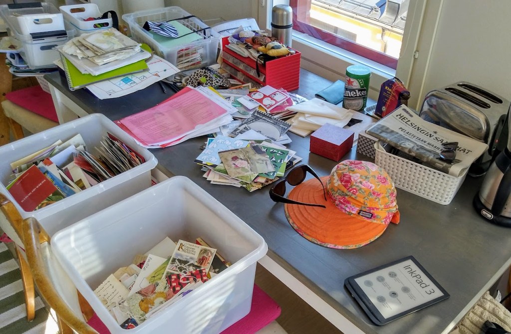 Lasten ja lastenlasten piirustuksia, keramiikkatöitä, valokuvia, opiskelukansioita, kaitafilmejä, vhs-kaseteille talletettuja omia videoita, jotka pitäisi siirtää nykytekniikalle. Kaizu otti elämäntehtäväksi hoitaa homman. Toivon, että se onnistuu jonain kauniina päivänä.