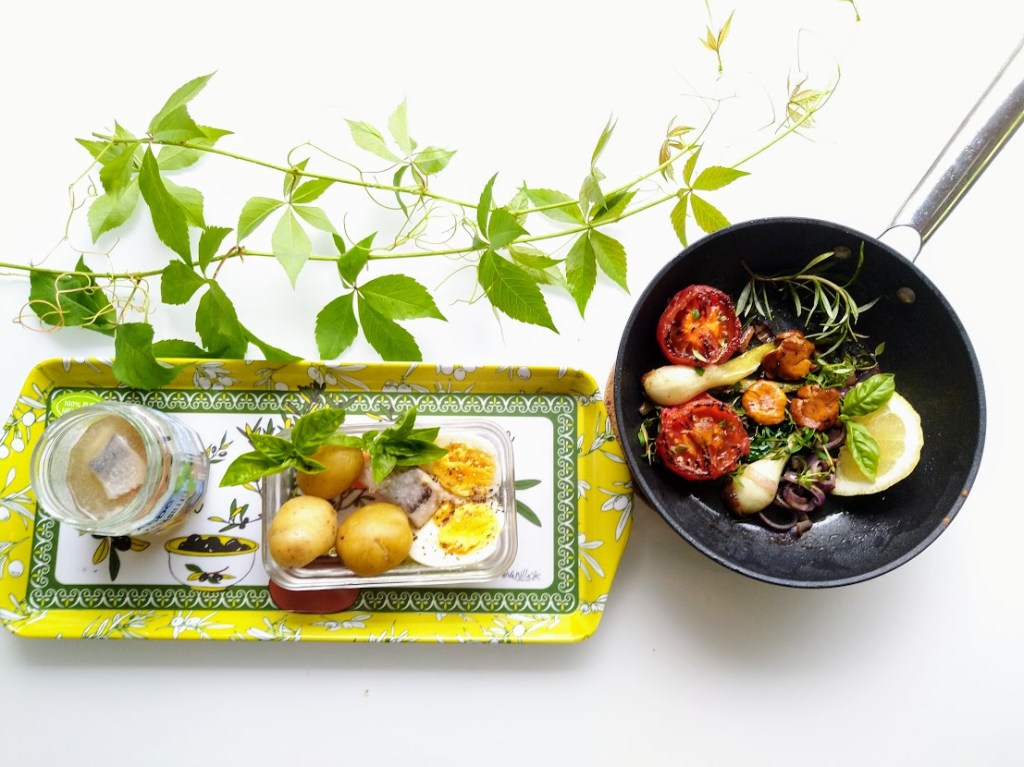 Vakuutin nuorisolle, että pärjään hyvin mökillä, kun kaapista löytyy silliä ja uusia perunoita. Olen syönyt viikonlopulta jääneitä ruokia. Vasta tänään pääsin herkuttelemaan.
