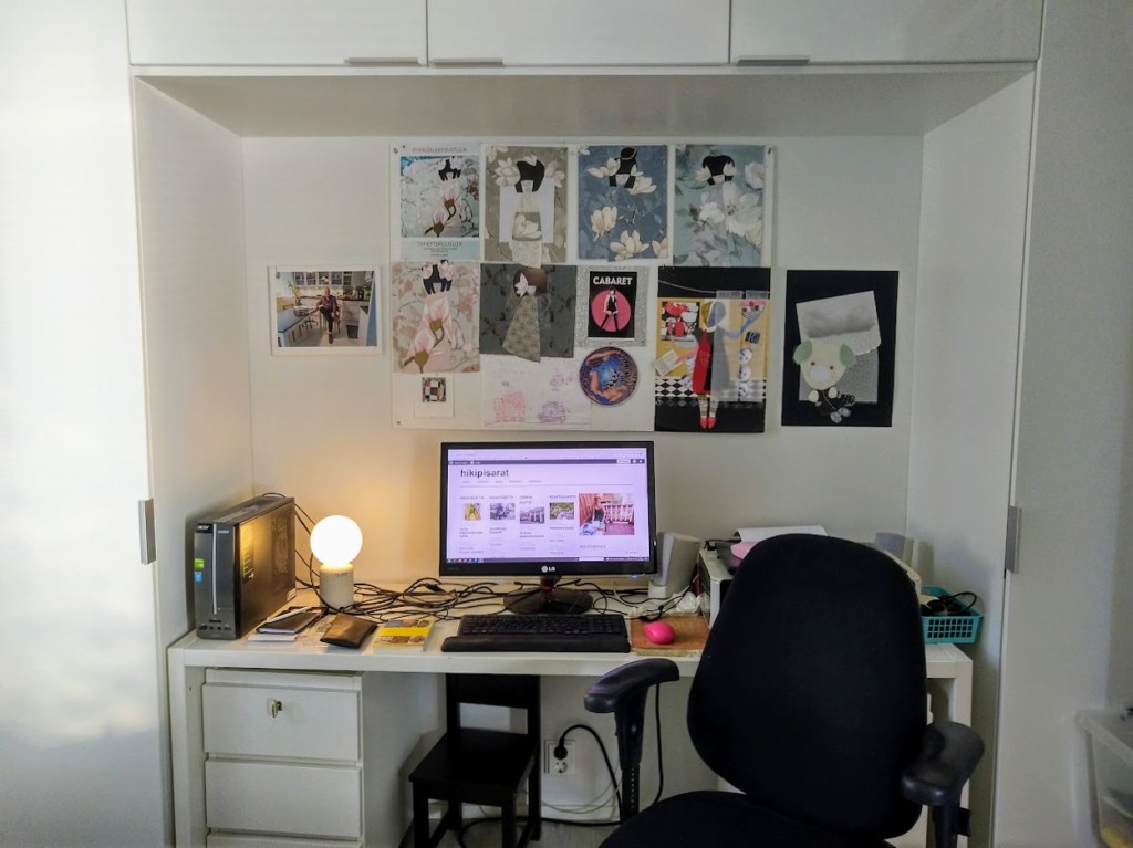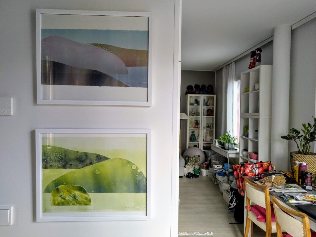 Täällä ollaan. Vuorikadun koti näytti lähes kahden viikon mökkiloman jälkeen kodikkaalta. Miika kävi viikolla laittamalla nauloja seiniin tauluja varten. Mama kiittää.
