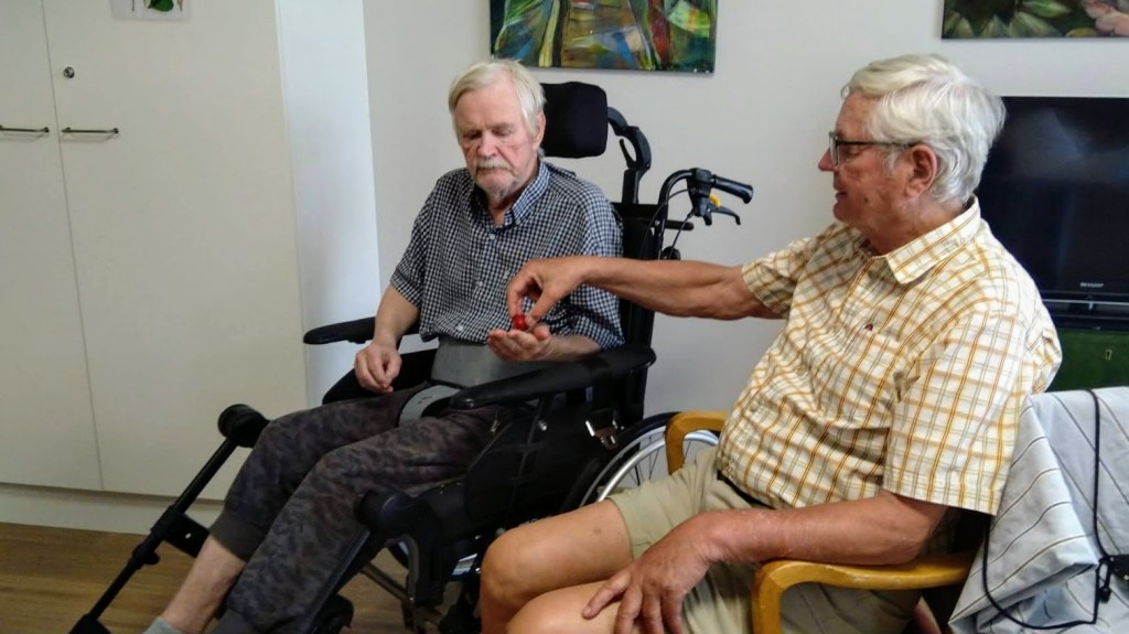 Visarannassa kaikki oli hyvin. Vein Jussille voimajuomaa ja pensasmustikoita. Istuimme terassilla ja minä kerroin mökkikuulumisia. Jussi ei juurikaan reagoinut. Sain hymyn hänen kasvoilleen, kun lupasin tuoda seuraavalla kerralla tuoreen viinerin.