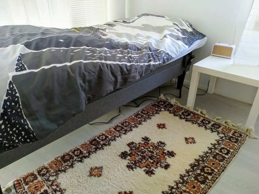 Kävin hakemassa pesulasta maton, jonka halusin makuuhuoneeseen. Isä toi sen vuosia sitten Marokosta ja se on ollut mökillä. Matto ei näyttänyt likaiselta, mutta mökinhaju oli tarttunut vahvasti. Nyt se pääsi putipuhtaana ilahduttamaan paljaita varpaitani.