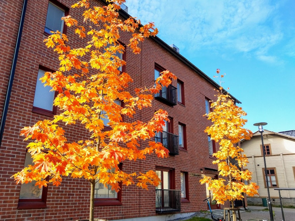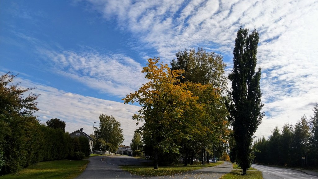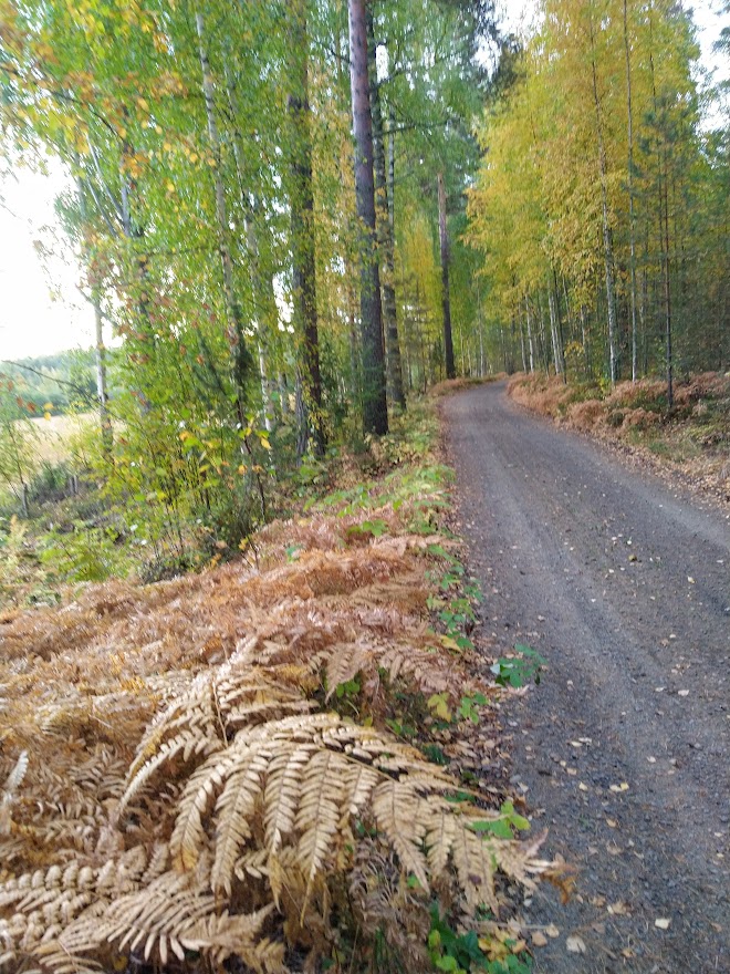 Kävin sunnuntaiaamuna ihailemassa ruskan värejä. Miikalla oli kurjempaa, sillä hän ryömi talon alle ja eristi vuotavan vesiputken. Siinä vierähti useampi tunti.