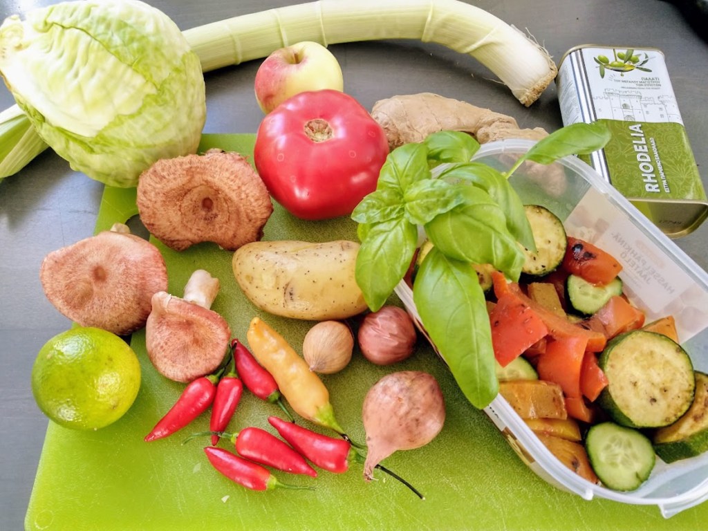 Otin jäljelle jääneet kasvikset mukaan kaupunkiin ja kokkasin maittavan kasviskeiton.