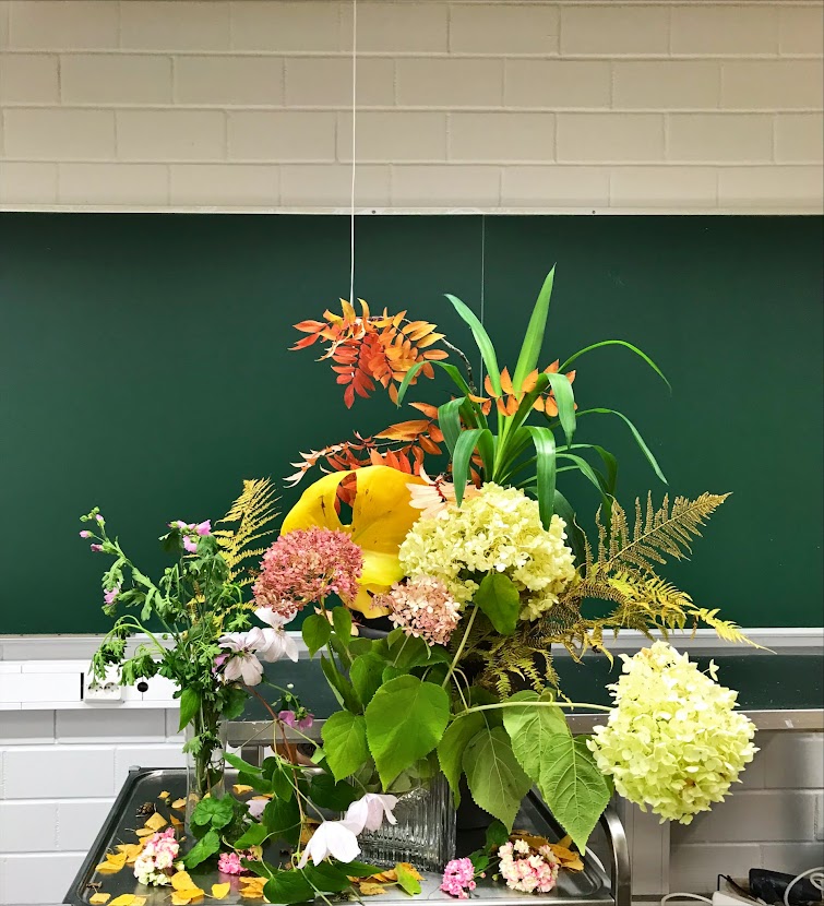 Opettaja Laura Valo on uusi tuttavuus ja hyvin virkistävä. Käytimme ensimmäisellä kerralla apuna inspiraatiokortteja. Seuraavalla kerralla Laura esitteli Anna Retulaisen taidetta. Hän rakensi luokan eteen näyttävän kukka-asetelman.