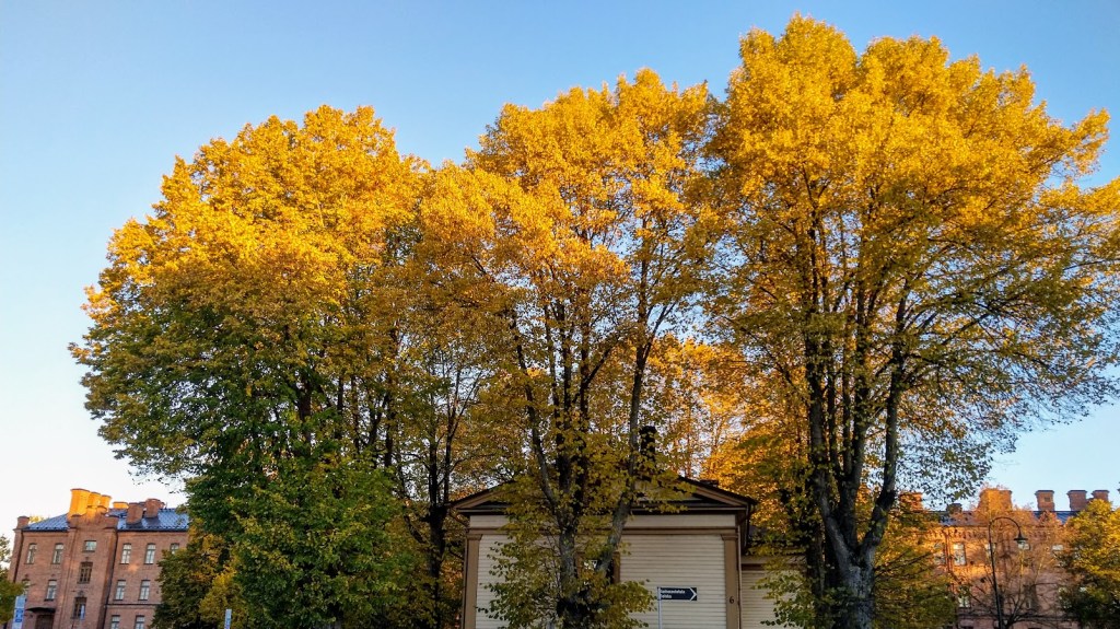 Kävelin sateenvarjon kera takaisin kaupunkiin ja sain kunnon saderyöpyn niskaani. Syksy on täällä.