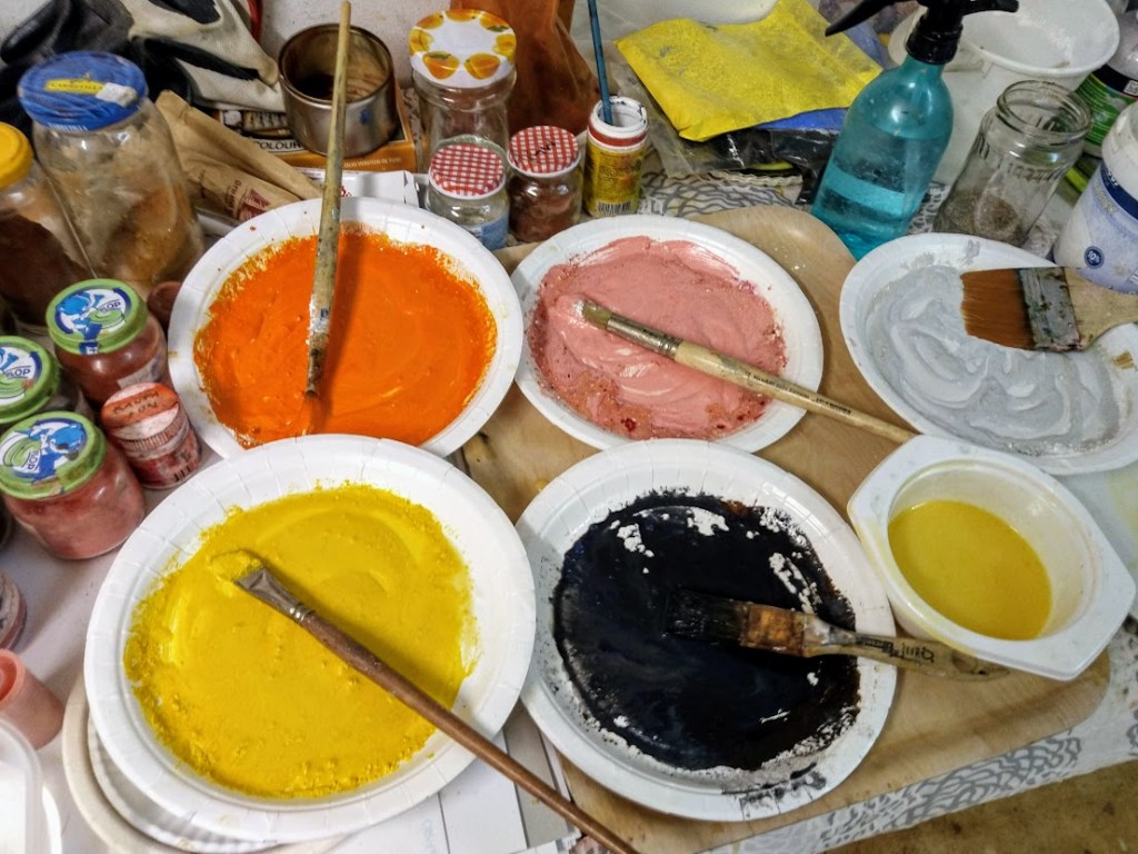 Vietin tänään laatuaikaa työhuoneella maalaamalla pitkästä aikaa temperaväreillä.