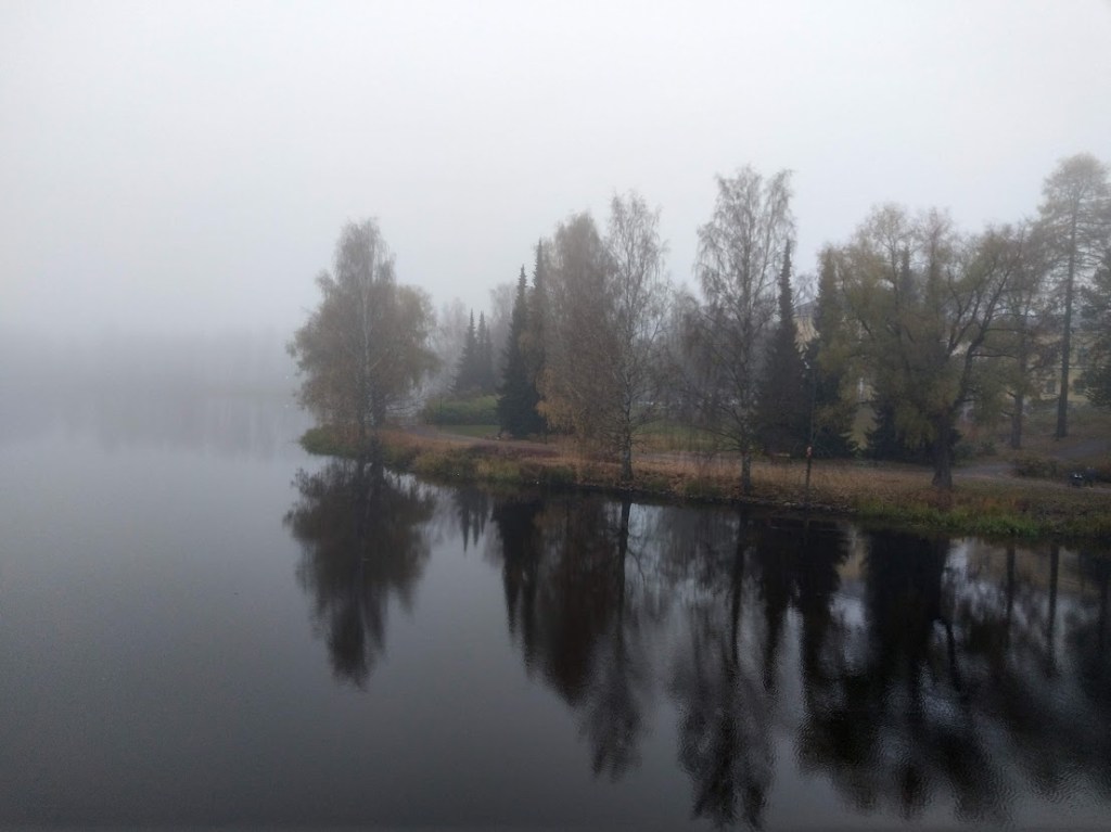 Olin reipas ja lähdin sauvakävelylle aamuvarhain. Keli oli kostea ja tyyni, vaikka luvassa on myrskypuuskia.