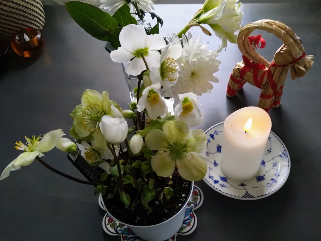 Olen viettänyt hiljaiseloa kotosalla, sillä ulkona on vesikeli ja jalkakäytävät liukkaat. Uskaltauduin kuitenkin kauppaan ja ostelin pieniä joululahjoja ja itselleni jouluiloksi kukkia. On outoa, kun päivittäiset harrastukset ovat tauolla. Olen katsellut täsmäohjelmia televisiosta ja lueskellut. Olen ostanut valmisruokia ja nukkunut aamuisin pitempään kuin aikohin.