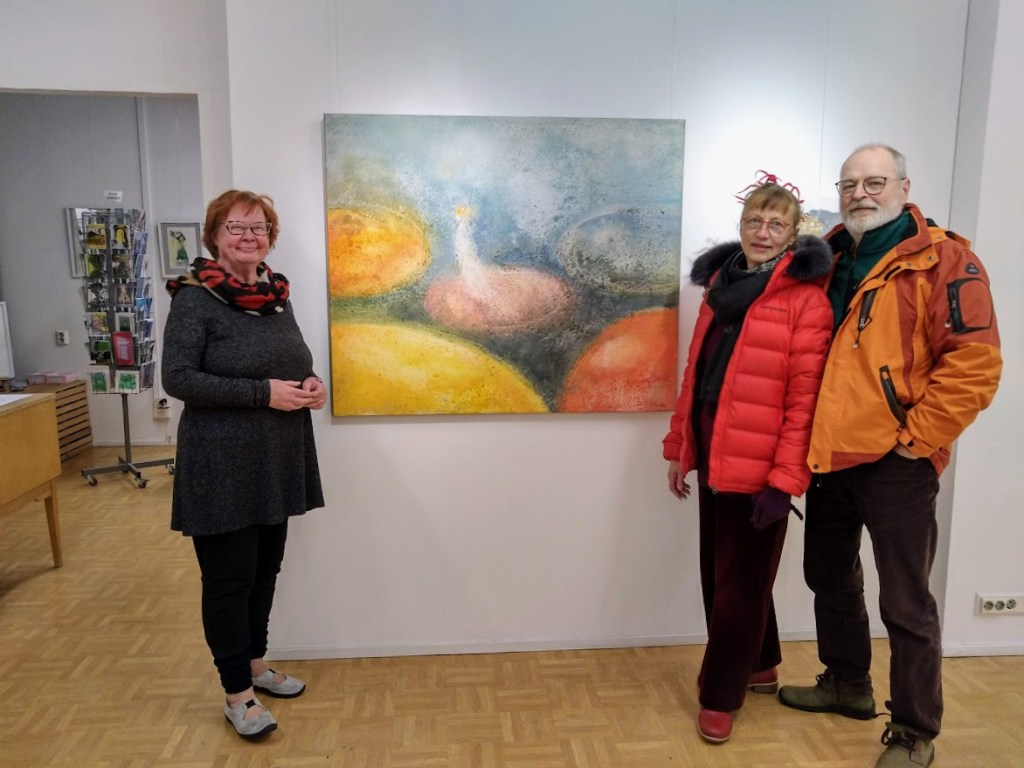 Tänään on juhlapäivä, kun Terttu ja Immo tulevat hakemaan tilaustyön. Jännittää, sillä he ovat nähneet sen vain valokuvassa. Vakuutin, ettei tarvitse lunastaa, jos se ei miellytä. En todellakaan pidä tilauksista, sillä ne aiheuttavat paineita. Kirjaston Puuteripölyä näyttely jatkuu loppiaiseen asti. Sen jälkeen en tiedä, mihin ryhdyn seuraavaksi.