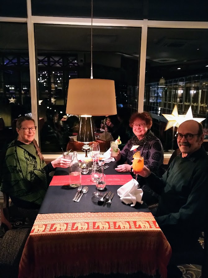 Illallinen Thai Gardenissa oli tunnelmallinen, runsas ja maukas, Minä valitsin lempikeittoni Tom yam kungin, Lii tiikerirapuja ja Kaizu ankanrintaa. Ruoka tuli niin nopeasti, että joimme aperitiivit jälkiruuaksi.