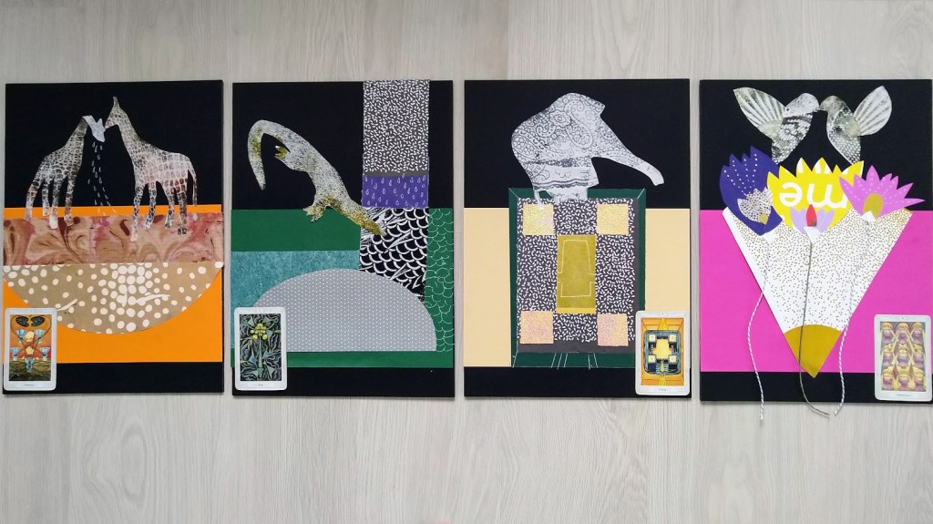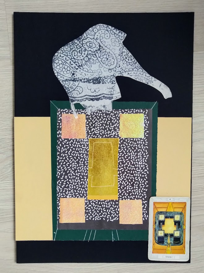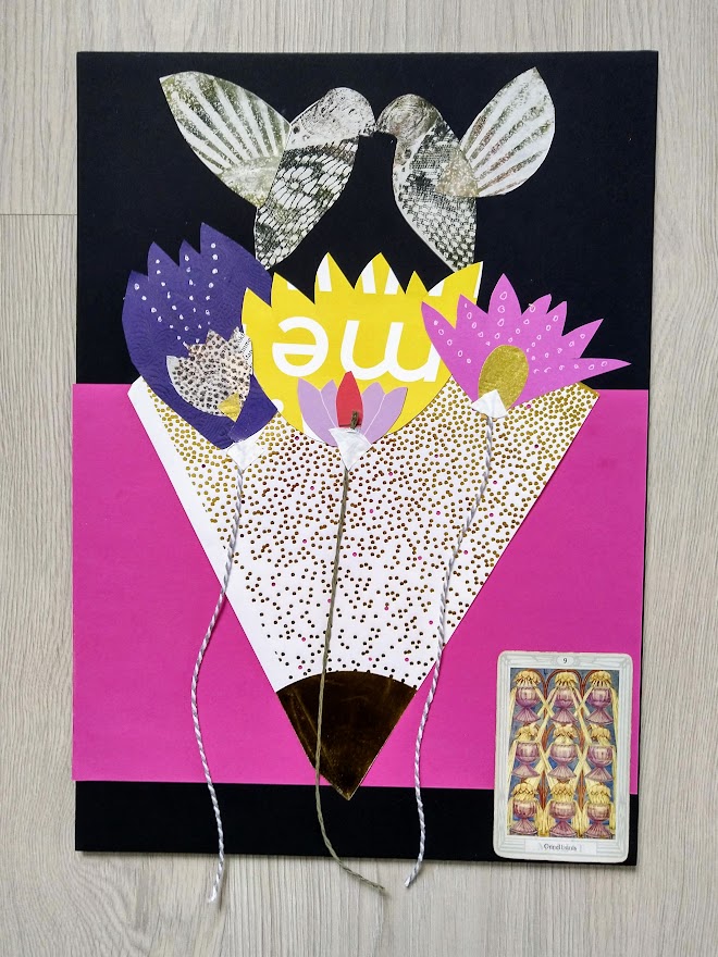 Nauroin Anna tyttärelle puhelimessa, että kollaasien tekeminen on niin kiehtovaa, että jatkan samoissa merkeissä. Ties vaikka näistä syntyisi ikioma tarotpakka;)