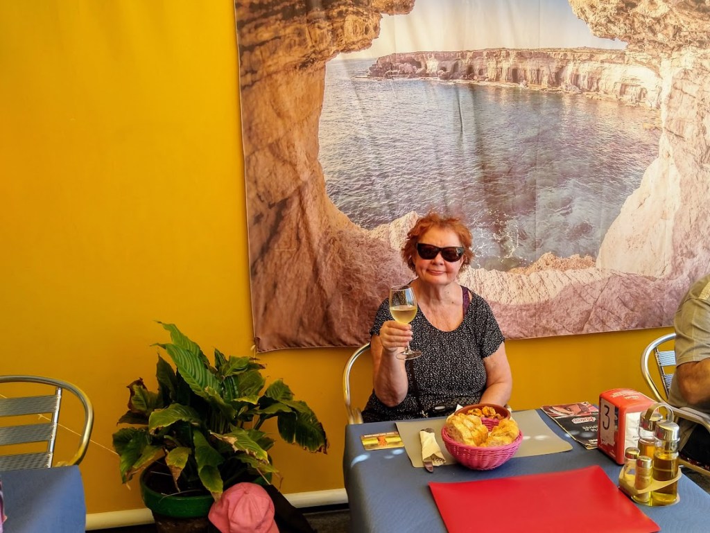 Kun taivas vetäytyi pilveen, lähdimme tutustumaan lähiseutuun. Fanabén ranta on mukavan lähellä. Rantakatujen varrelta löytyi lukematon määrä ruokapaikkoja. Lapset herkuttelivat pizzalla ja ranskalaisilla, me muut maistelimme mustekalaa, tonnikalaa ja Samun tilaamaa sirloinpihviä. Maut olivat kohdallaan, samoin jälkiruokajäätelöt. Yksi pallo maksoi kaksi euroa, kaksi palloa kolme euroa.