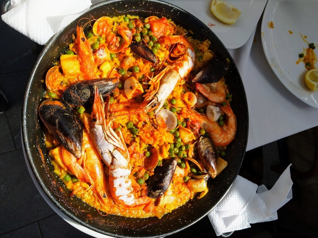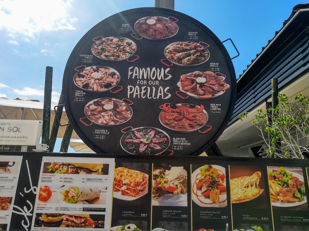 Kiertelemme lounasaikaan rantakadulla ja valitsemme ruokapaikan. Tänään oli paellapäivä.