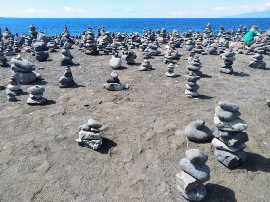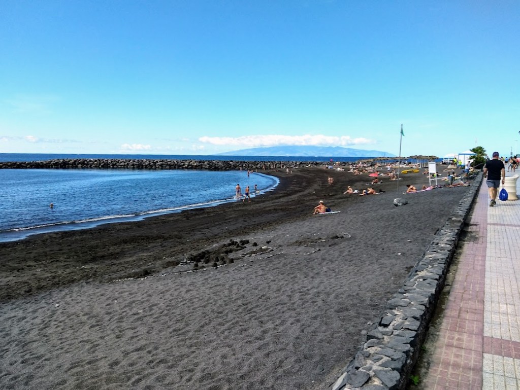 Lähdin iltapäivällä lenkille ja kävelin rantakatua ohi vaalean hiekkarannan ja ohi mustan laavakivirannan.