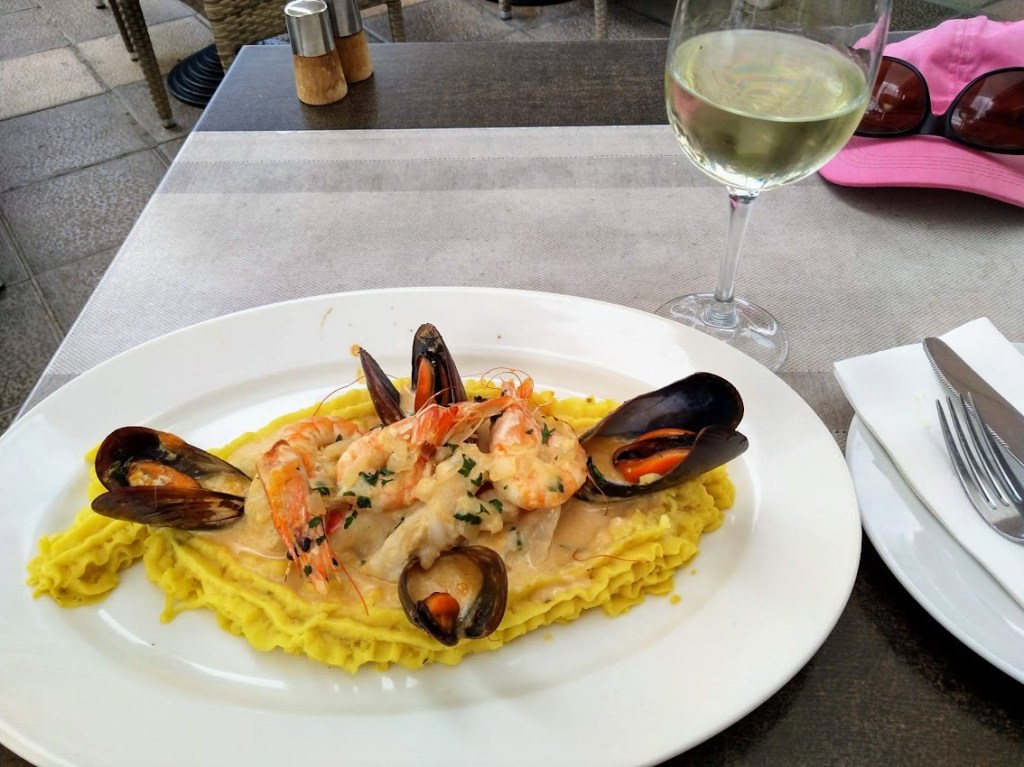 Istahdimme porukalla rantaravintolaan ja tilasimme viimeisen päivän kunniaksi aikuisille pikkukalmareita, valkosipulirapuja ja tonnikalapihvin. Miika yllätti valitsemalla listalta jänistä. Lapsille maistui vielä pizza. Anna ja Laura sekä lapset valitsivat värikkäästä kuvastosta cocktaileja. Lapsille alkoholittomat, joista he eivät pitäneet. Minä tyydyin punaviinin ja Miika otti olutta.