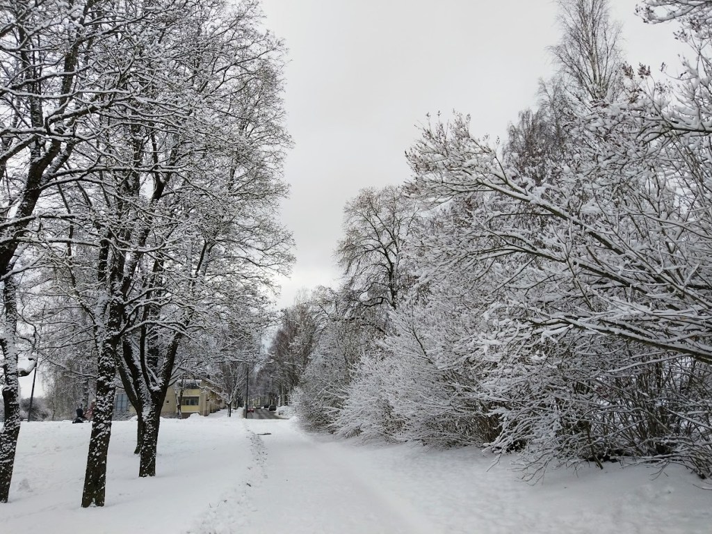 Keväästä ei ollut merkkiäkään, kun kävelin lähes kahden viikon tauon jälkeen Visamäkeen. Lunta oli enemmän kuin ennen lomamatkaa.