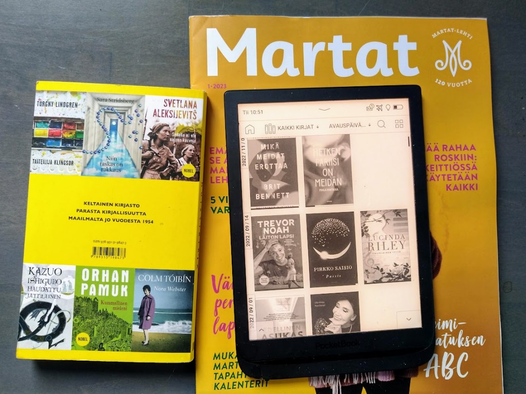 Maailmankuva avartuu, kun me lukumartat tutustumme maihin, joista emme ennestään tiedä juuri mitään. Ji Seong-hon tositapahtumiin perustuva kertomus Pako, jonka piti olla mahdoton kertoo Pohjois-Koreasta, Julia Philipsin Katoava maa Kamtsatkalta, Jane Harperin Kadonnut mies ja Kuiva kausi Tasmaniasta, Trevor Noahin Laiton lapsi ja Britt Bennettin Mikä meidät erottaa ihonvärien vaikutuksista elämään Etelä-Afrikassa.