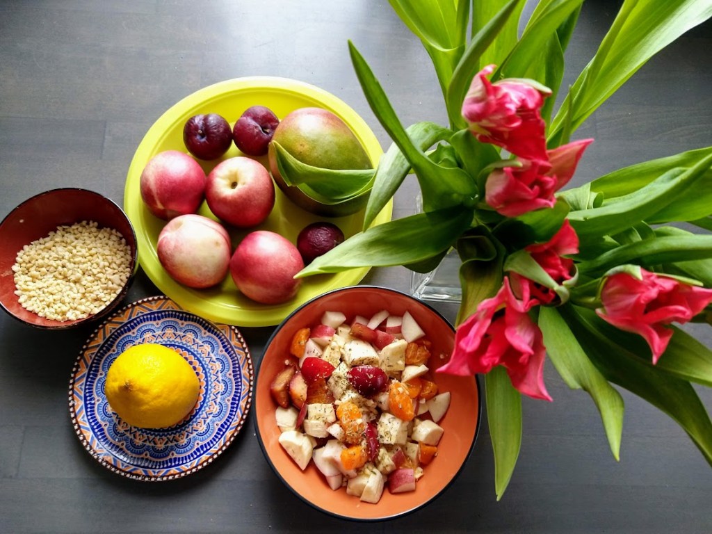 HEDELMÄSALAATTIA JA NAISTENPÄIVÄN ILOKSI TULPPAANEJA