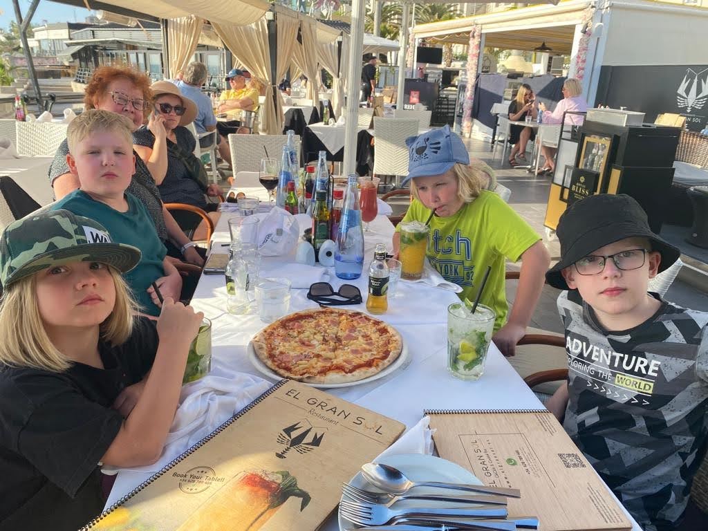 MEILLÄ OLI HOTELLI PARQUE DEL SOLISSA PUOLIHOITO, KÄVIMME LOUNAALLA RANTAKADUN RAVINTOLOISSA, LAPSILLE PIZZA MAISTUI