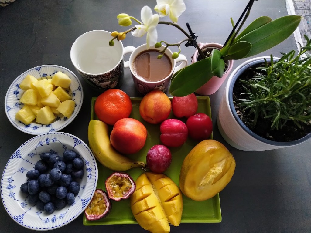 Ostin kaupassa käydessäni eksoottisia hedelmiä ja tuoreen puna-ahvenfileen. Lumenen kasvovoiteet olivat tarjouksessa, ostin niitäkin.