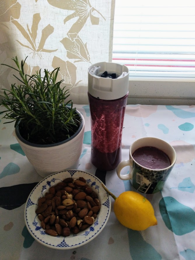 Mitä opin? Ensinnäkin juomaan vähíntään kaksi litraa vettä päivässä. Keittiön työtasolla on litran vesikannu, joka helpottaa laskemista. Aloitan aamun lisäämällä vesilasiin ruokalusikallisen omenasiiderietikkaa. Keittelen sen jälkeen vahvan kahvin, johon sekoitan raakakaakaota, mantelimaitoa ja hyviä rasvoja. Blenderissä siitä tulee vaahtoavan pehmeä.