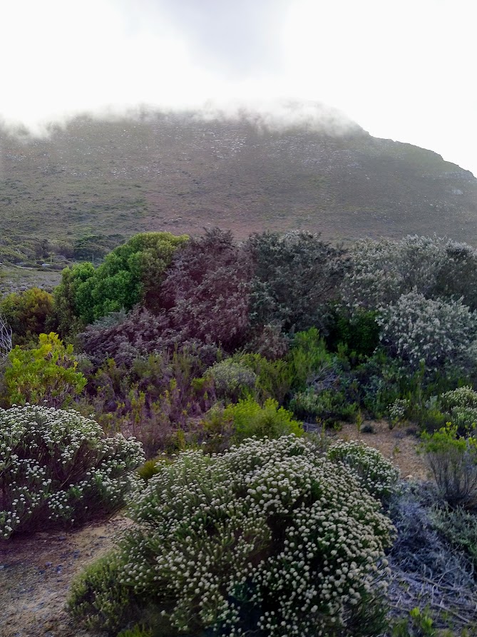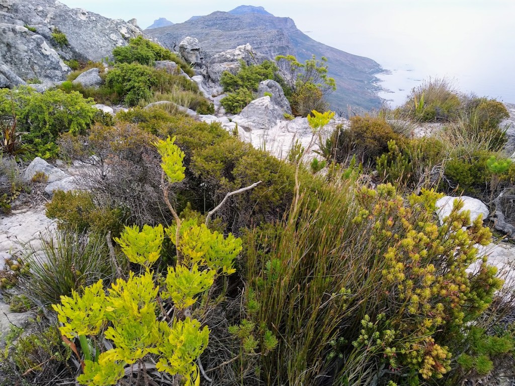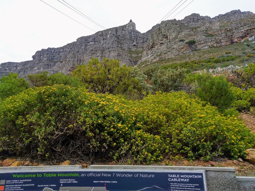 Pöytävuorella ei ollut pilvipeittoa, joten gondolihissi toimi. Ylhäällä oli runsaasti pensaskasvillisuutta, jota ei kasva missään muualla.