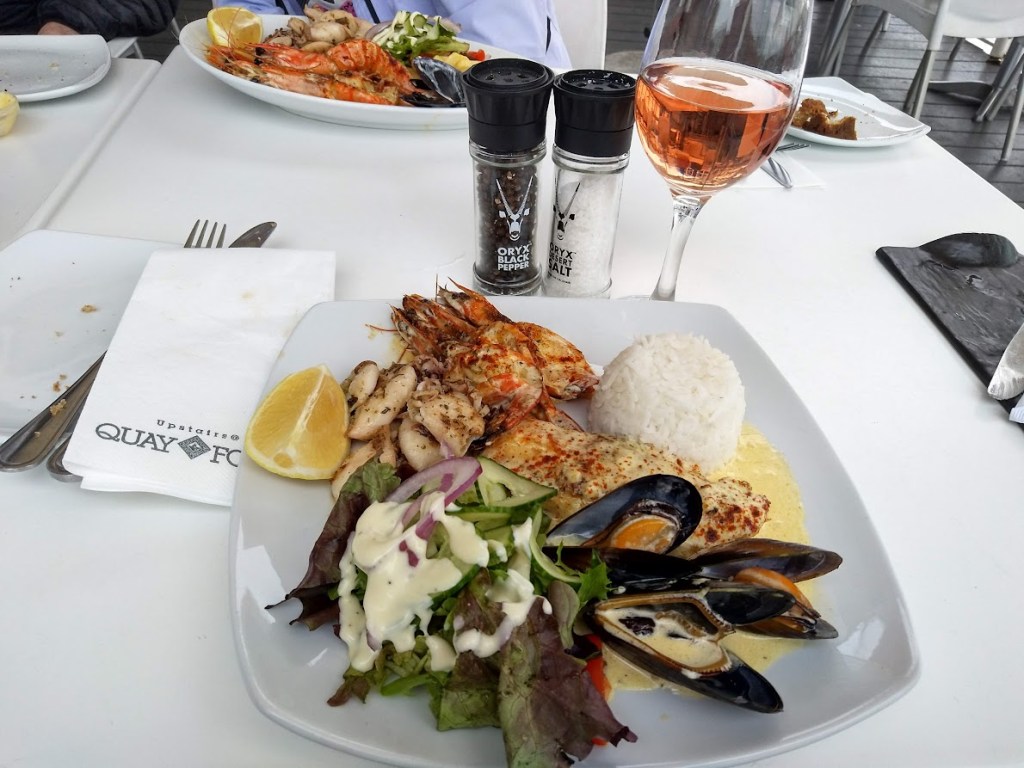 Nautin retken jälkeen hyvässä seurassa huippuhyviä mereneläviä Waterfrontissa ravintola Four Quayn terassilla.