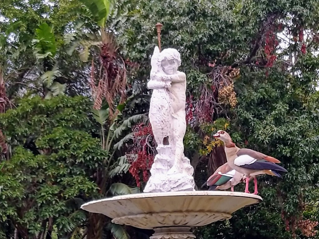 Paluumatkalla kävimme lounaalla Simons townin kauniissa pikkukaupungissa. Saimme kummeliturskaa ja mureaa mustekalaa sekä juuressalaattia. Näimme muinaisten merimiesten suosikkikoiran patsaan. Kiusanhengeksi nimetty isännätön tanskandoggi seurasi miehiä junakyydillä Kapkaupunkiin ja varmisti, että he pääsivät kapakkakierroksen jälkeen turvallisesti takaisin.