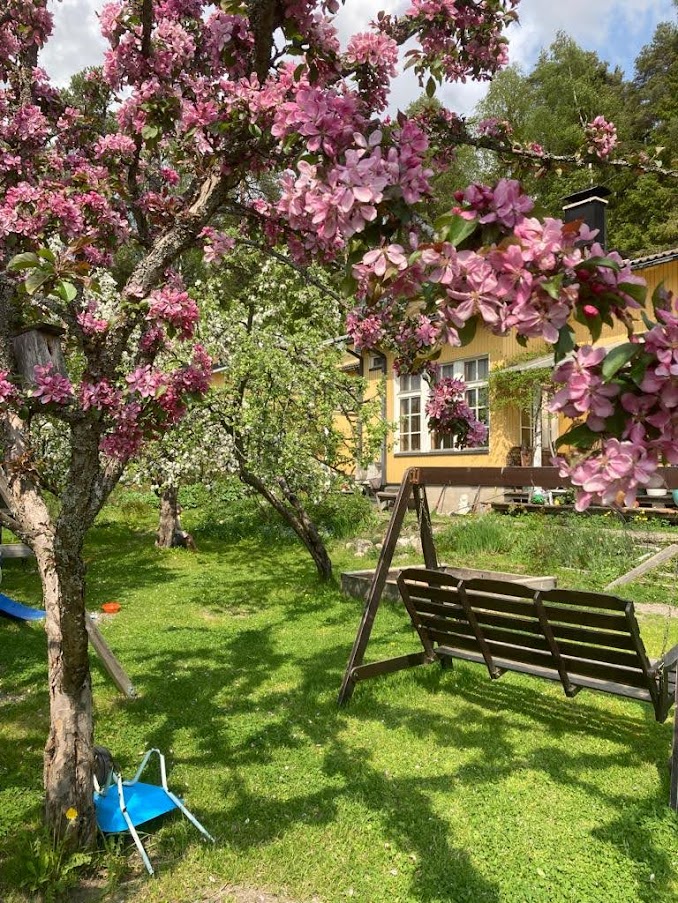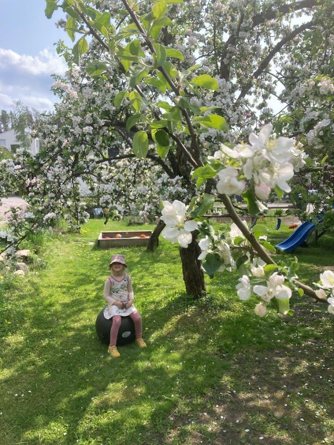 Laura ilahdutti lähettämällä Perhepoppoo WhatsApp ryhmään valokuvia Espoon kodin kukkivasta pihapiiristä.