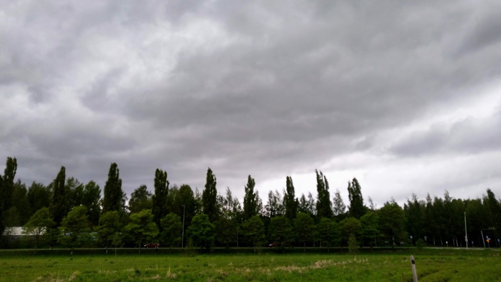 Taivas oli synkässä pilvessä, tuuli puuskainen ja ilmassa oli sateentihkua. Jussi oli syvässä unessa iltapäivällä. Herättelin lempeästi ja tarjoilin suklaaproteiinivanukasta. Soittelimme Mikko veljelle, joka kertoi, että Konnevedelläkin on koleaa. Kutsuin käymään mökillä tarkistamassa, mitä kallellaan olevalle saunamökille voi tehdä.