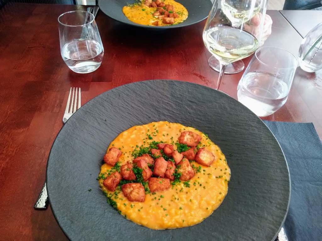 Tarjosin Uomassa gourmet lounaan. Testasimme aina hyvän risoton. Siinä oli tomaattia ja grillattua halloumia. Päivä oli suloisen lämmin. Reippailimme illalla Galleria Paperihuoneelle katsomaan ikoninäyttelyä ja istuimme sen jälkeen tuopillisen ajan Rantakasinolla. Tuntui, kuin olimme olleet ulkomailla.