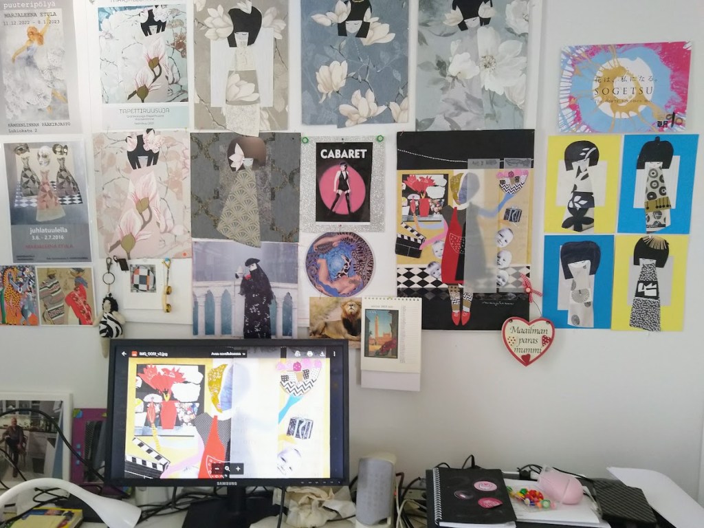 Päivitin voimakuvani tietokoneen takana. Olen kiinnittänyt osan tarroilla, jotka olivat väsyneet. Nyt silmäniloa riittää kannustamaan tulevaa luomisvimmaa.