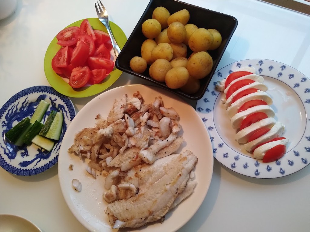 Tällä viikolla ajattelin syödä pelkästään omia lempiruokiani, uusia perunoita ja silliä. Keitin jo eilen kattilallisen kullankeltaisia varhaisperunoita ja avasin sinappi- ja tillisillipurkit. Kellarissa on Karhu-olutta ja lonkeroa. Mitä muuta lomalainen voisi kaivata. Jos tarkkoja ollaan, niin tietenkin tuoretta Vanajan kuhaa ja ahvenia. Olemme päässeet niiden makuun jo kahtena viikonloppuna, kun Miika on käynyt yökalassa. Toivon jatkossakin kireitä siimoja.