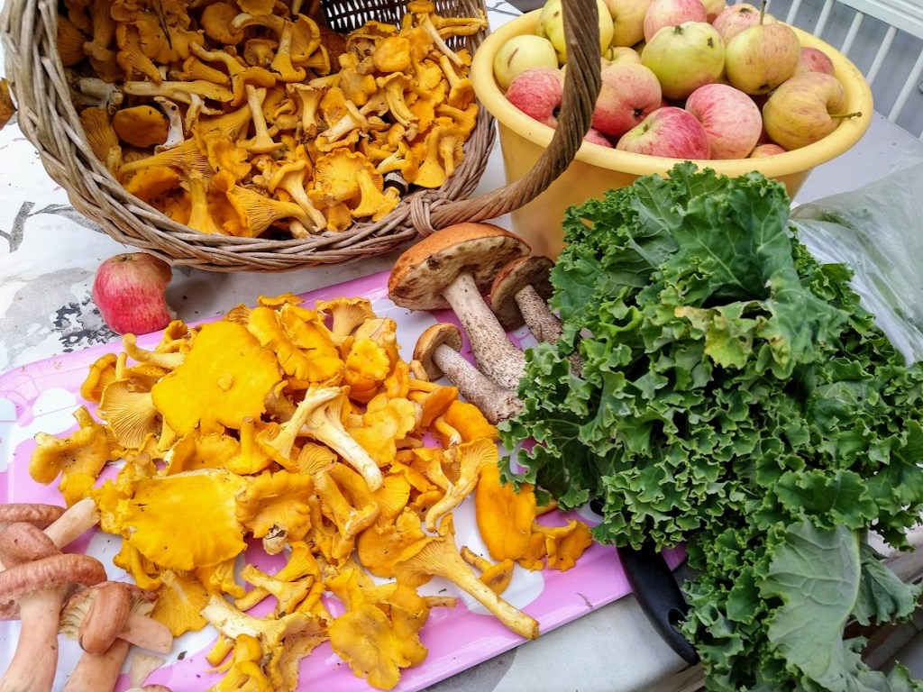 Minä pääsin lempipuuhaani perkaamaan sienisatoa.